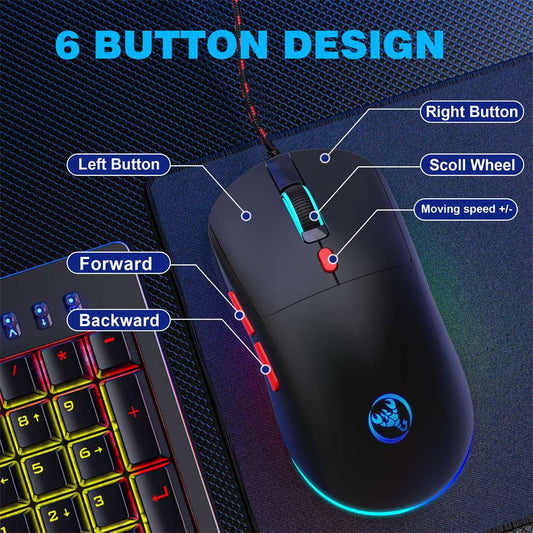 USB Wired Gaming Mouse,Usb Computer Mouse with 4 Adjustable DPI, RGB Backlit LED, Side Buttons, Ergonomic Design Mice for PC, Laptop, Windows, Mac, Vista, Linux, Gamer,Black